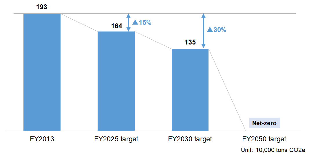 Furthermore, by FY2050, we aim to achieve net-zero GHG emissions from our operations and contribute to the realization of a CN society by reducing the carbon footprint of the products we supply.