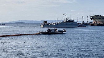 ・桟橋配管での重油漏洩に伴う油回収処置、オイルフェンス展張