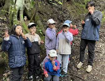 子どもたちは、シグナルを探し森の隅々にまで目を配ったり、笛の音が聞こえないか耳を澄ませたりと、いろいろな事にアンテナを張りながらそれぞれの感性で大自然の中の時間を過ごしました。今回の体験が子どもたちの感覚を更に豊かにしてくれることを期待します。