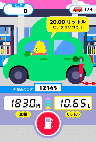 ガソリンスタンドを舞台に、「給油量をピッタリに合わせよう!」というミッションに挑戦するゲームです。
